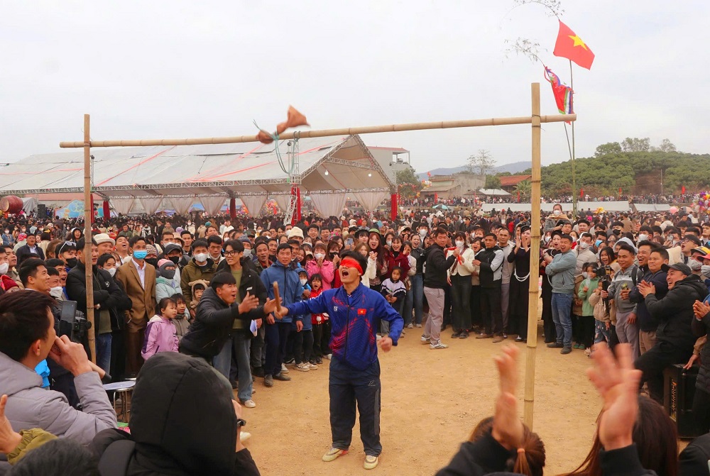 Bịt mắt đập niêu luôn thu hút đông khán giả cổ vũ.