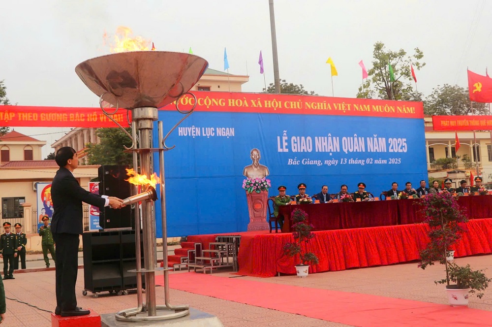 Tại buổi lễ, đồng chí Lương Thế Tuấn, Bí thư Huyện ủy đã thực hiện nghi lễ thắp lửa truyền thống. Đồng chí Đào Công Hùng, Quyền Chủ tịch Uỷ ban nhân dân, Chủ tịch Hội đồng Nghĩa vụ quân sự huyện đánh trống hội giao quân và phát biểu động viên, chúc mừng những người con ưu tú của quê hương Lục Ngạn lên đường nhập ngũ đợt này.